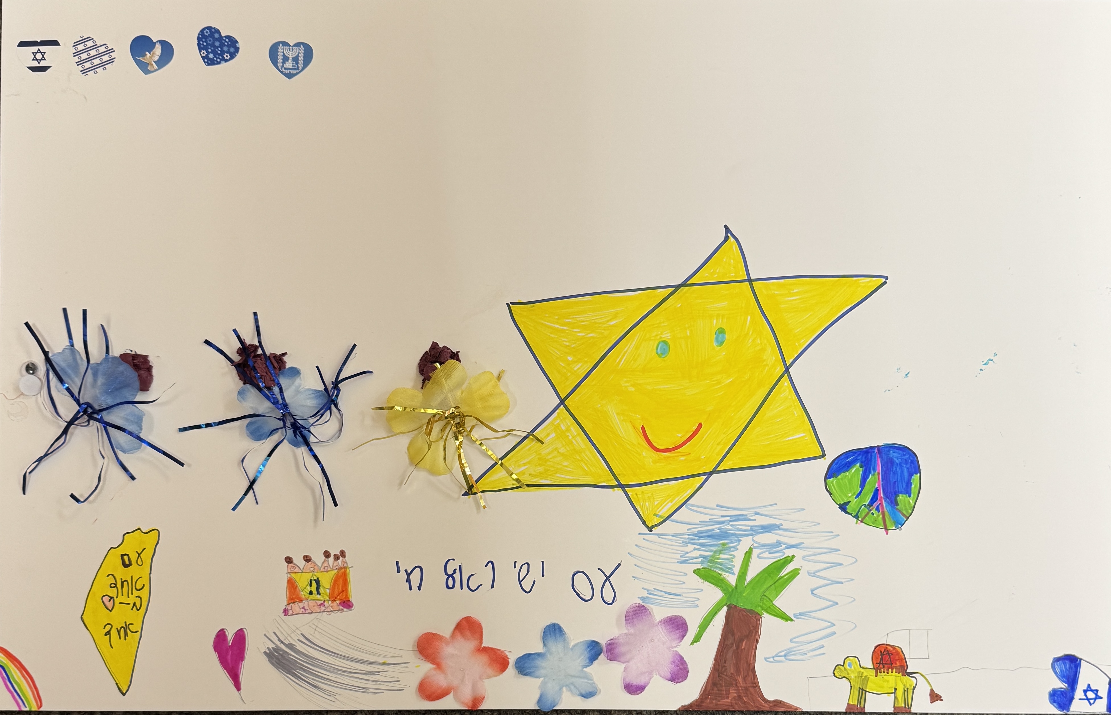 I love Israel because Hashem gave it to us. It is an opportunity and a gift. We are so lucky we were given Israel and that we are a big Jewish family. Even if we live far from this land it is still our home. Hashem is always watching over us. See above In my poster, I drew a crown representing Hashem watching over us and a map of Israel that says Am Echad B'lev Achad, that we are one family. Jewish studies