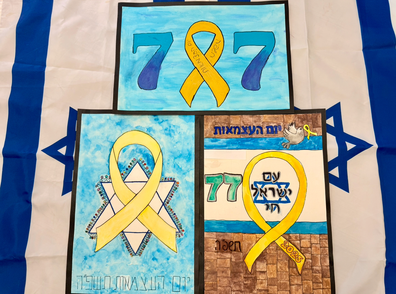 We focused on historical facts through art, how visuals, colors, and images reflected the socio-political and cultural climate each year. We design our own posters in class for Israel’s 77th. The students expressed their connection and feelings for Israel with colors and symbols based on how they see today’s reality of resilience and hope. The posters reflect how our heritage, language and identity come to life in the classroom. The love, hope, pride, resilience and pain we all feel. The love for Israel is to embrace the soul of Am Israel, it is that love that shapes our teachings and is reflected every day in our school. The main message is about heritage, past, present and future. A deep connection to our land, our soul and our people. We worked using all the primary resources from NLI about the independence posters since 1948, analyzing each of them from a visual, abstract and social-political climate view.