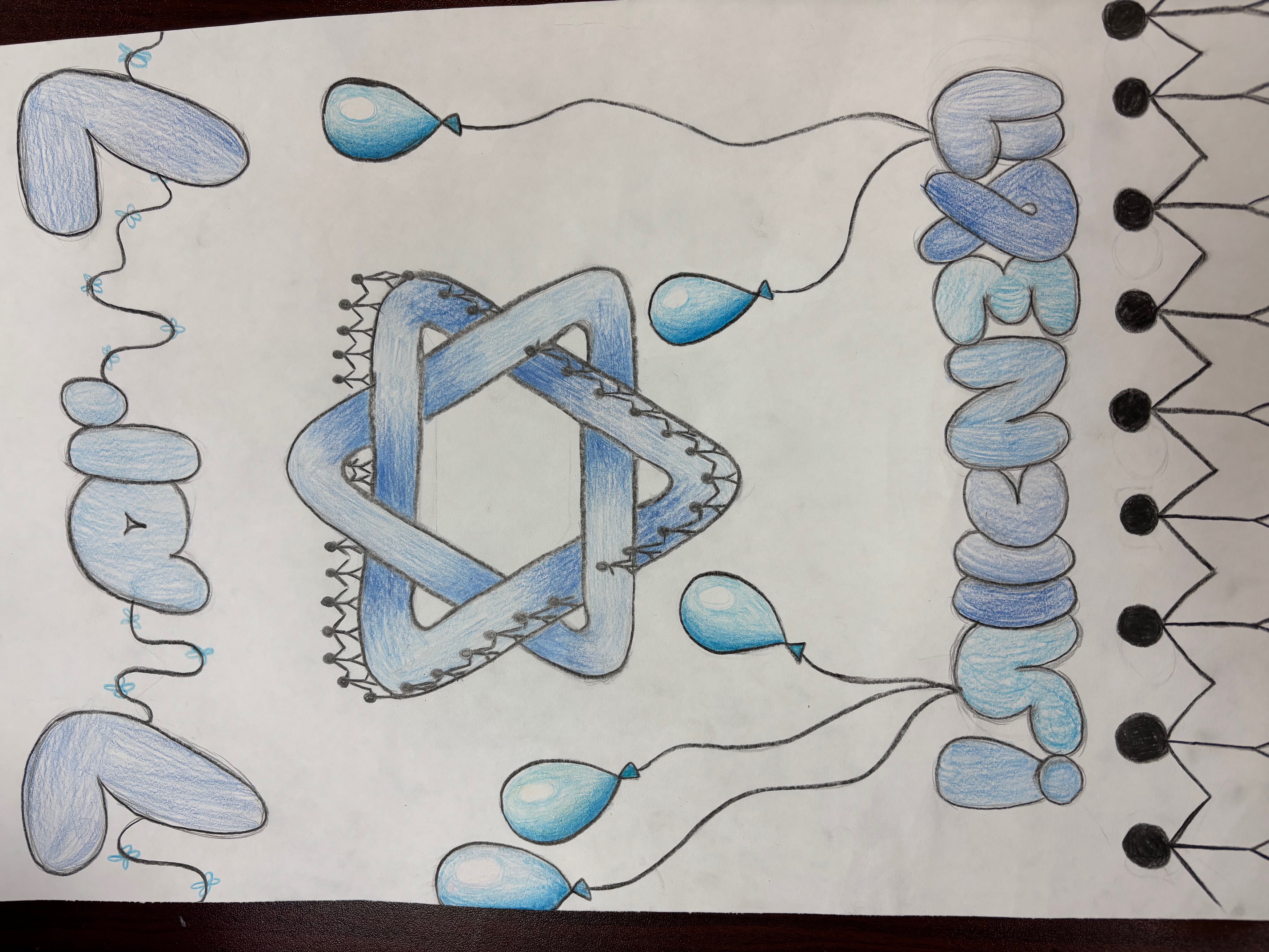 I drew the Star of David on my poster. There are many people holding hands around it, and I added more people holding hands at the bottom of it. I wrote יום העצמאות (Independence Day), and drew balloons in blue and white. The main point of my poster is to show how on Yom Ha'atzmaut, all of the Israeli people celebrate the important day together. The balloons are for Israel’s birthday, and they help emphasize the happiness of the day. Israel now, and has always represented, the unity and the care that people take of each other. Israeli people constantly help each other and their communities with anything. Especially now, in days of chaos, every Israeli is taking their part in helping the country and the people, whether it’s big things like going to the military, or smaller things like making food for the soldiers and donating. Everyone cares for each other, and when someone needs help or support, everyone around him are happy to help. That is one of the many Israeli and Jewish values, and in my opinion, friendship and community are very important and powerful values. In my poster, I’m conveying the message that Israelis are good at sticking together when things get tough. The people of Israel will always hold hands and support each other at all times. Ingrid Trandafir- In their poster, they drew a family sitting together and hugging. This relates to my poster because everyone is together, like how in my poster, the people are holding hands together.